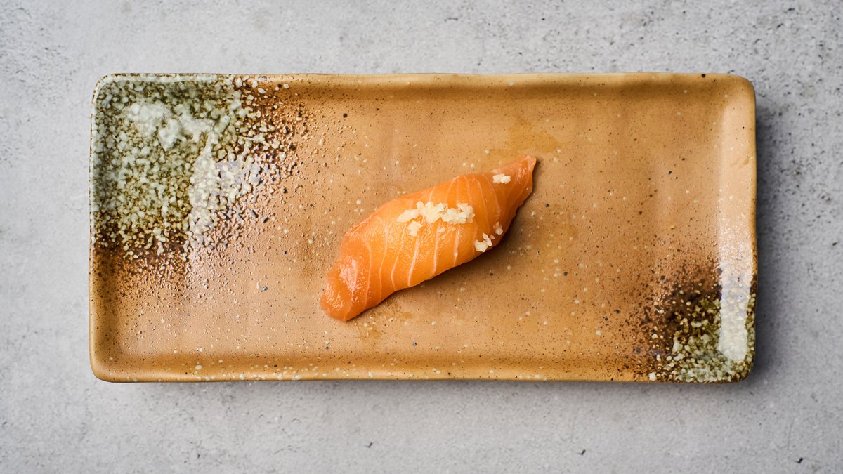 Laks nigiri med hvidløg