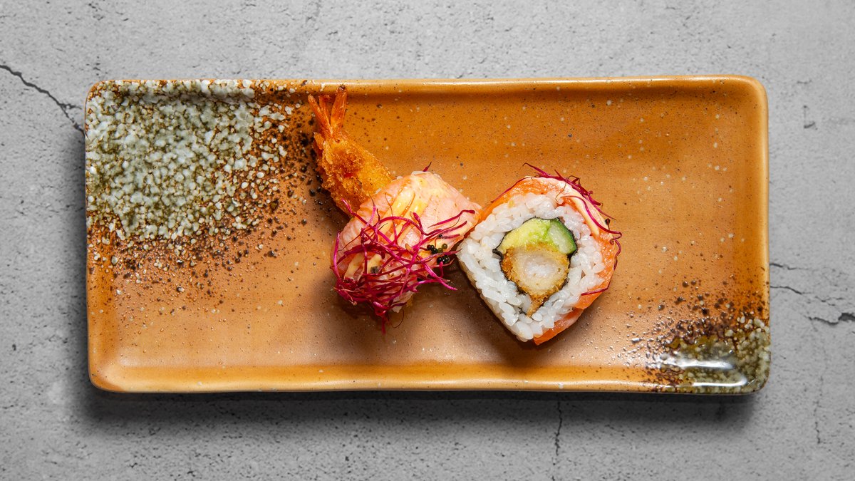Anbefales til 2 personer. Uramaki: 8 x california Kaburimaki: 8 x golden ebi 8 x aurora 8 x philadelphia 8 x crunchy tun