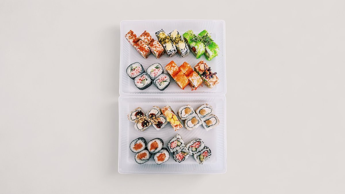 4x Avocado 4x Avocado Hot 8x Laks Maki 8x Seafood Agurk 4x Spicy Laks 4x Spicy California 4x Sweet Veggie 4x Laks Royal 4x Avocado Tempura 2x Laks Dragon Nigiri: 4x Tigerreje Nigiri 2x Spicy Tun Nigiri
