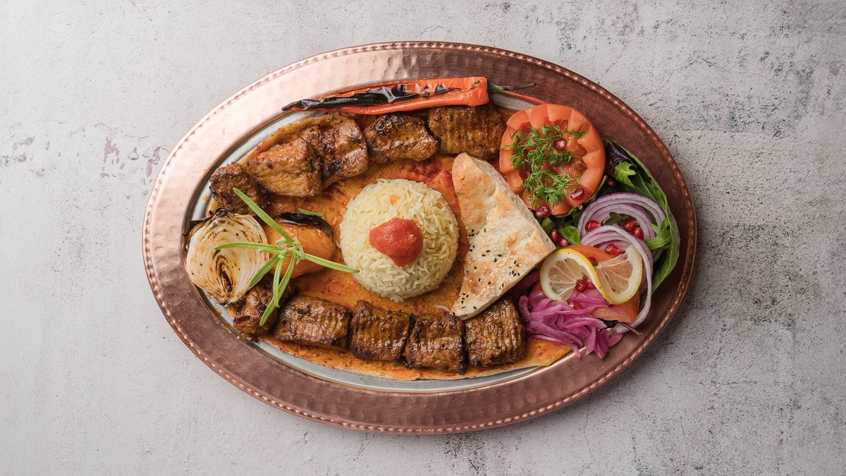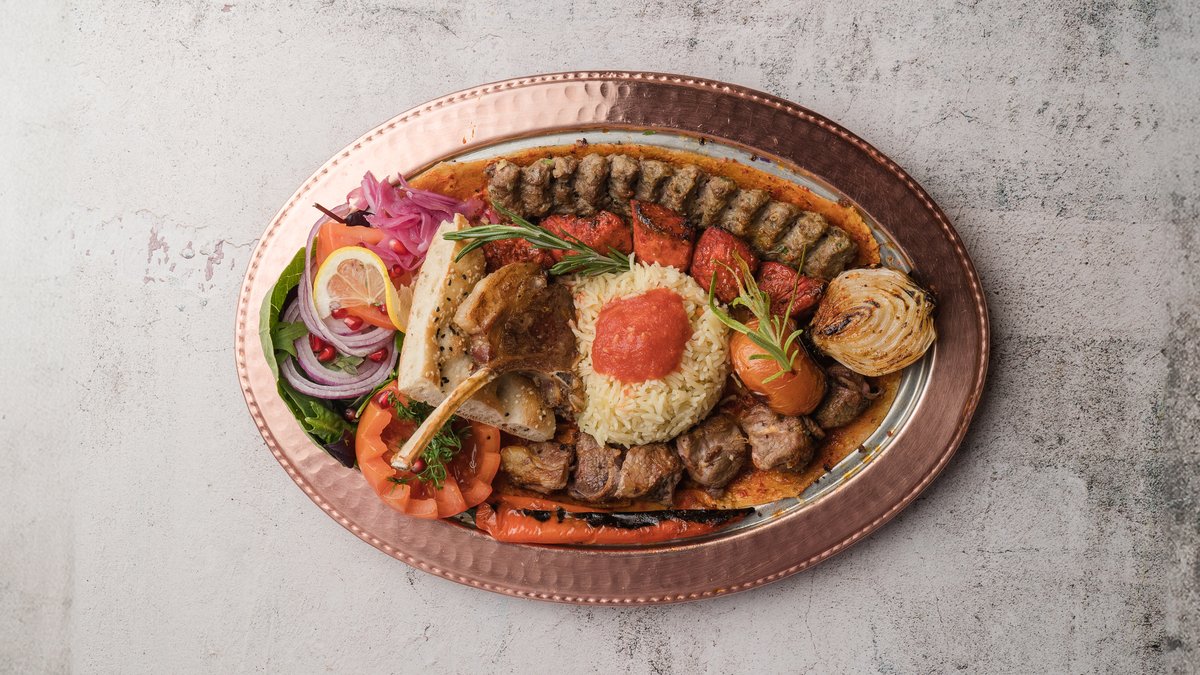 Kombination af kebabspyd, kyllingespyd, lammespyd og lammekrone. Serveres med grillede grøntsager, valgfri ris eller bulgur og syltede løg.