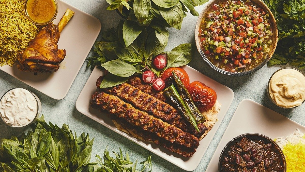 Tallerken med fire forskellige forretter: 4 spyd Kubideh, 1 spyd Shandiz (4 stk), grillede tomater og grillede peberfrugter. Hertil Baghali Polo ba Mahiche, Ghorme Sabzi og Zereshk Polo ba Morgh. Serveres med Salat Shirazi, hummus, Thurr-Shi, Khiar-e Shurr, Zeytoon Parvardeh, Sabzi Khordan, Mast o Khiar og brød.
