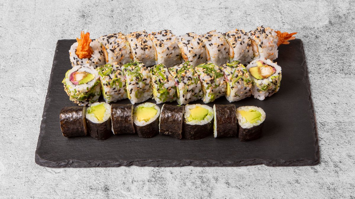 Starters: 8x Green Tempura 8x Tofu Roll Hosomaki: 8x Avocado Hosomaki