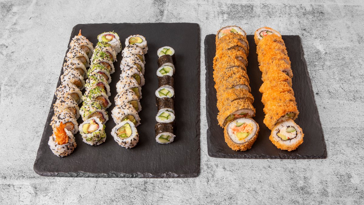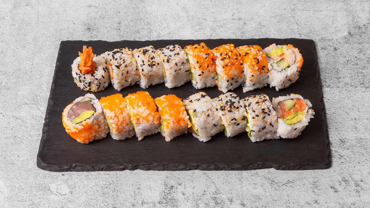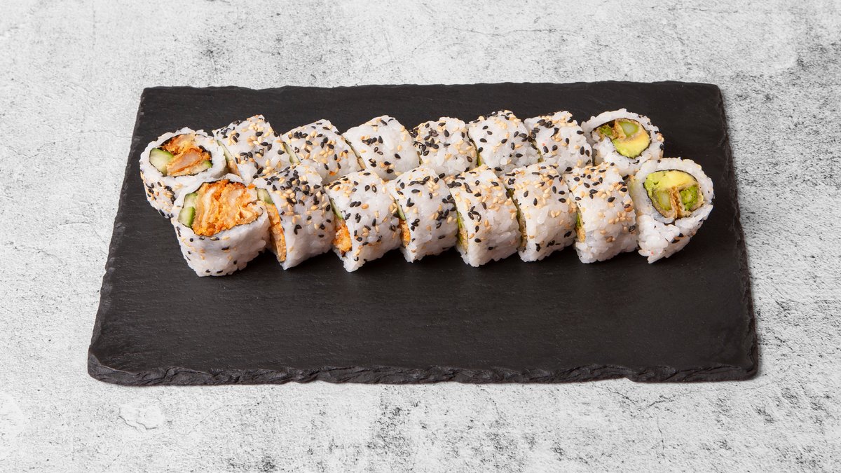 Uramaki: 8x Crispy Ebi 8x Crispy Kylling 8x Green Tempura 10x Crispy California