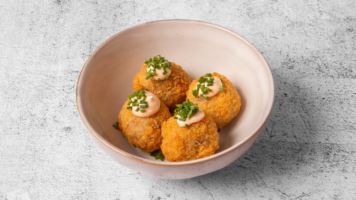 Serveres med miso aioli og ørredrogn.