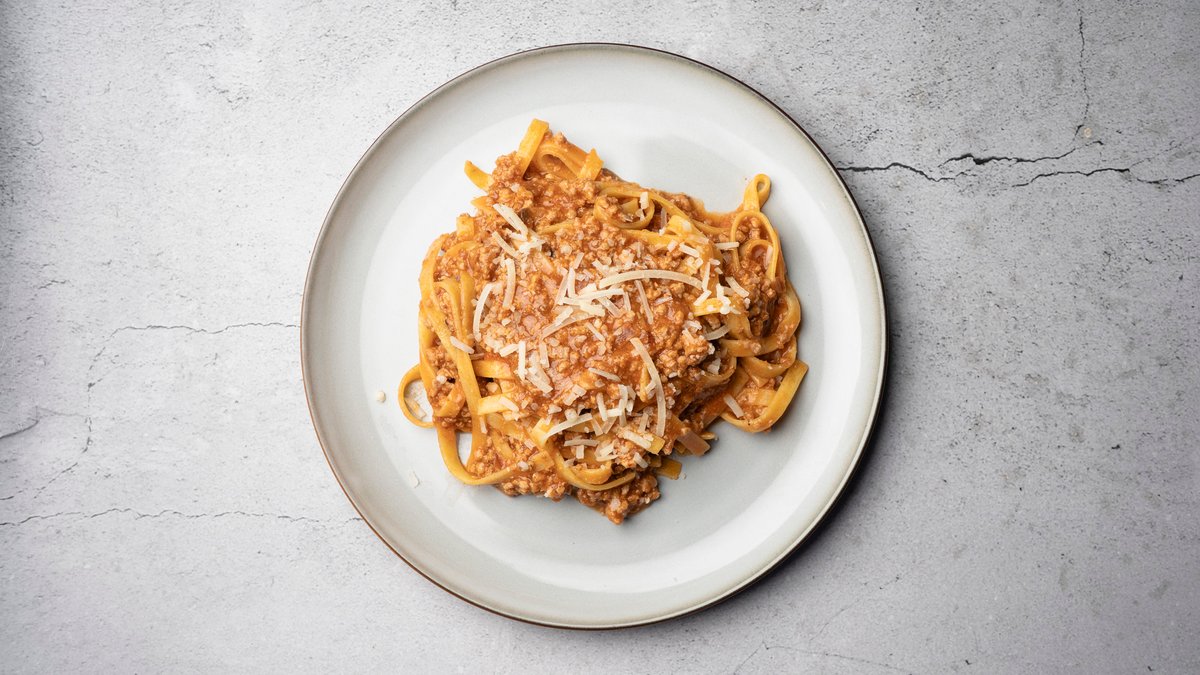 Tagliatelle med hjemmelavet original Ragú bolognese. (Svine/ Oksekød sauce)