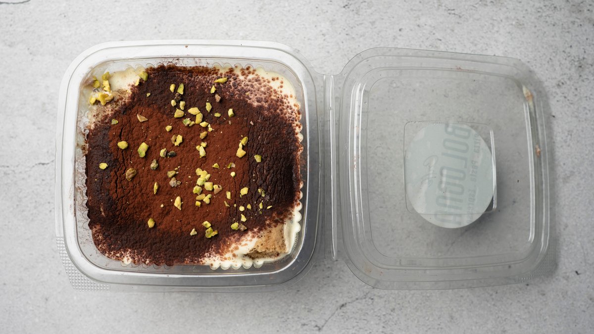 Italiensk dessert med lag af pistacie, mascarponecreme, ladyfingers og kakao.