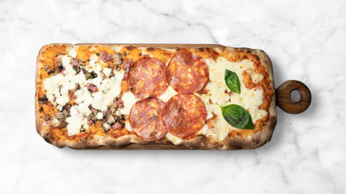 1/2 meter surdej pizza: den perfekte surdej pizza til din familie: 2 voksne og 2 børn kan spise denne pizza. Du kan vælge op til 3 forskellige smagsvarianter!
