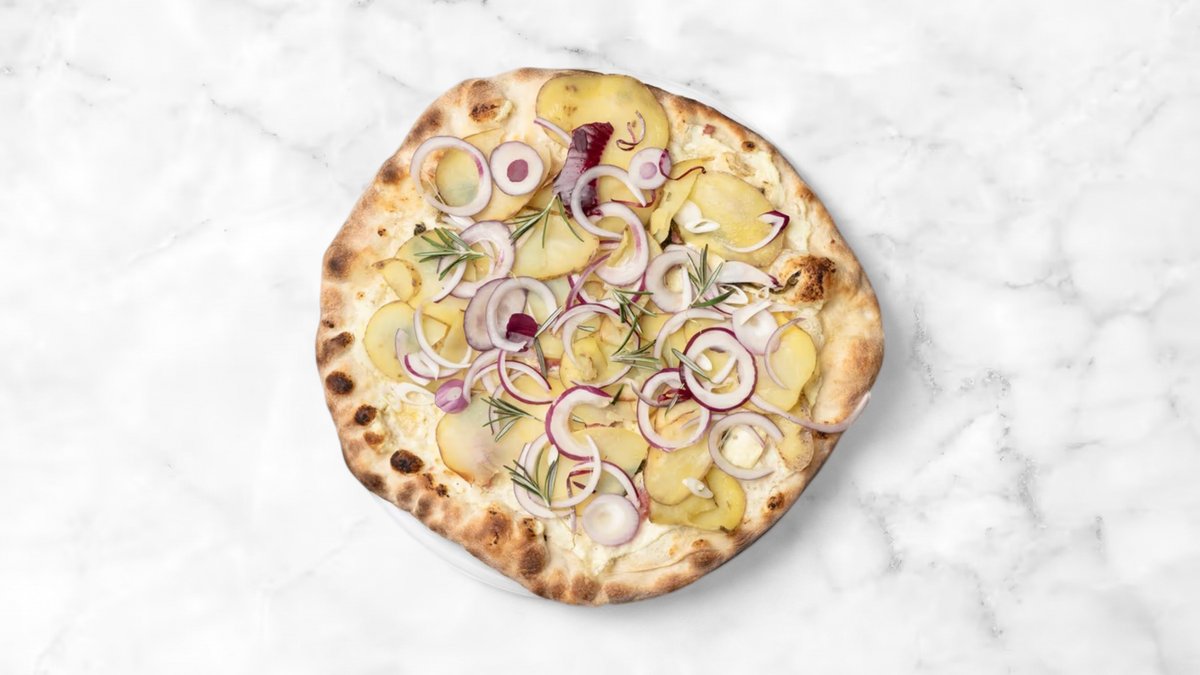 Ricotta ost, mozzarella, kartofler, rødløg og rosmarin.