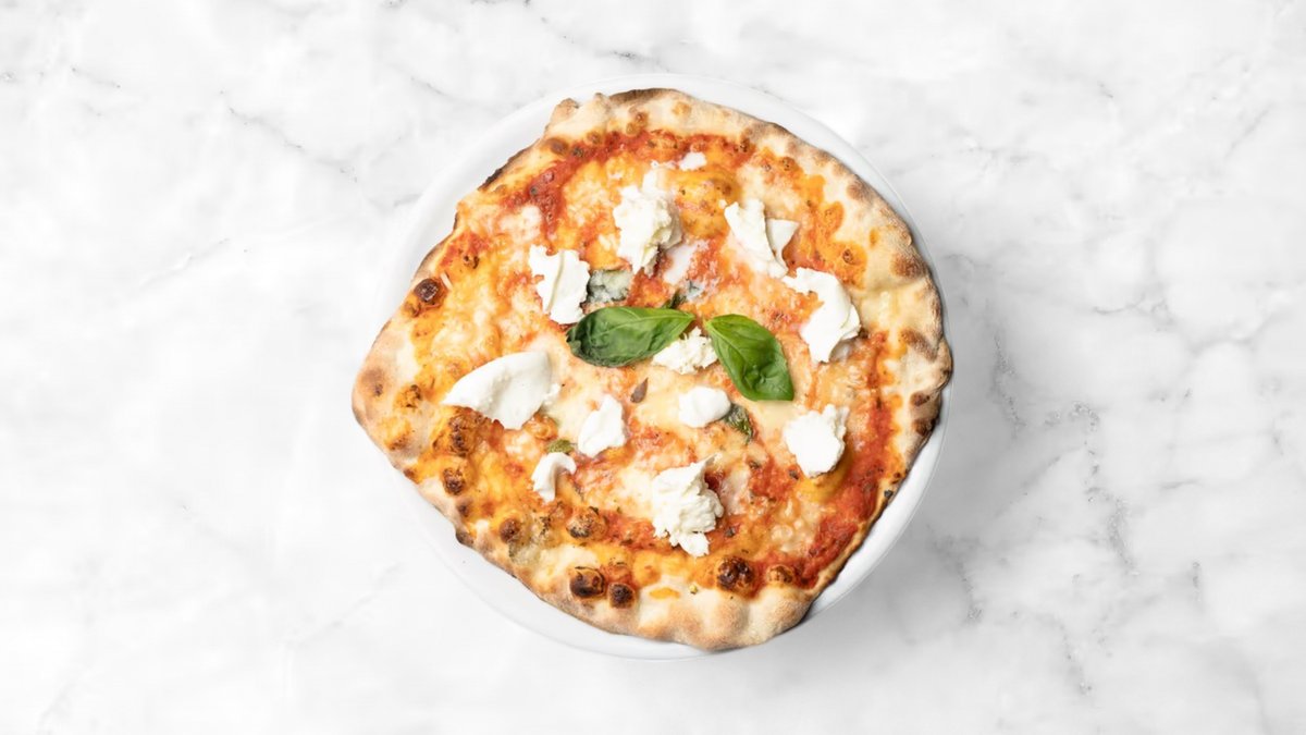Tomatsauce, mozzarella, bøffelmozzarella og basilikum.