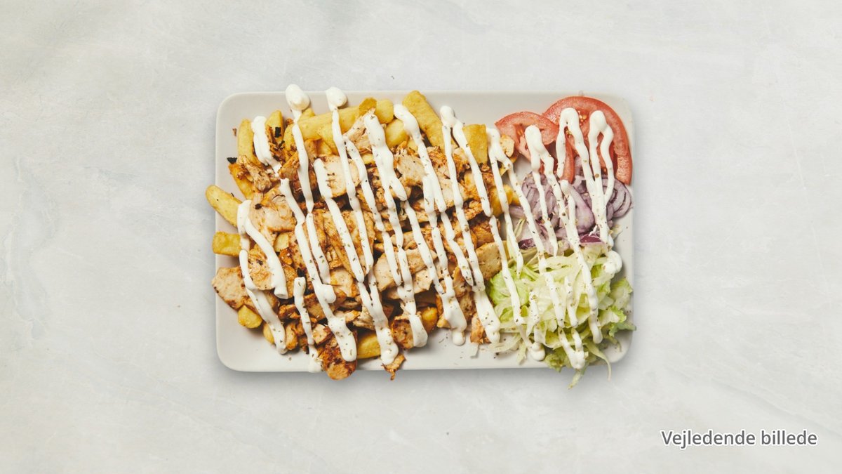 (Kyllinge kebab) - Serveres med pommes frites og en valgfri 0,33 l sodavand.