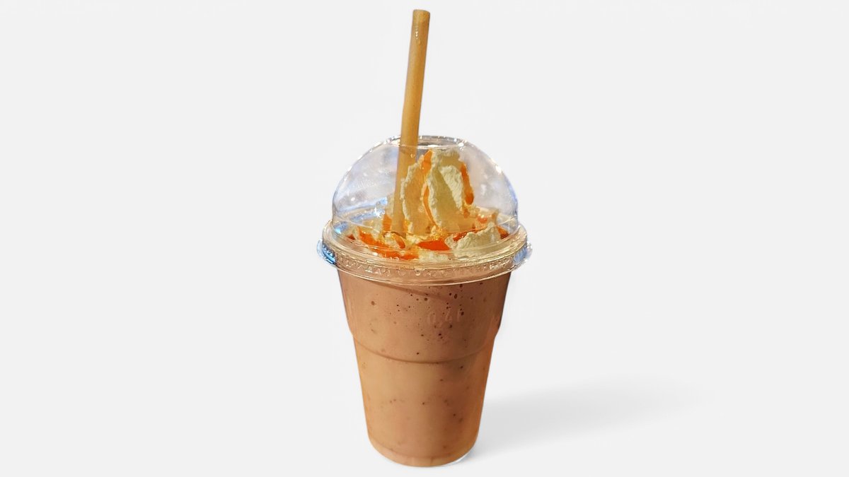 Nyd vores lækre smoothie med banan, Nutella, Twix, Daim og flødeskum - den ultimative dessertsmoothie!