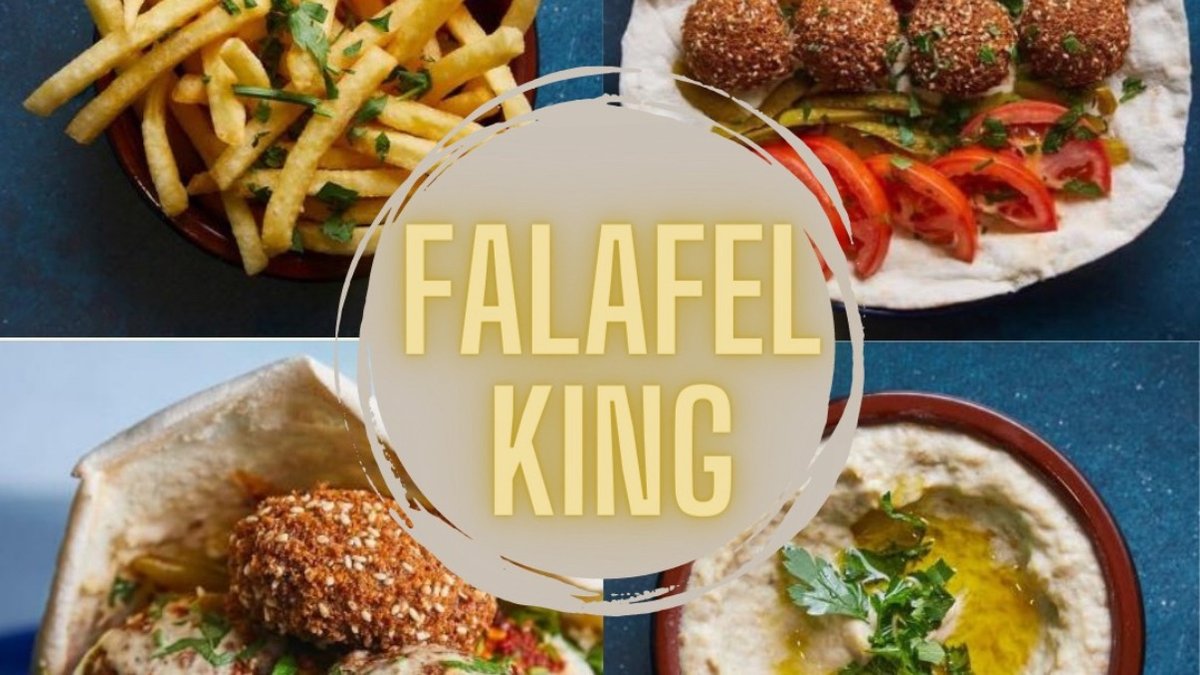 Falafler, blandet salat, hummus, tahini, brød og pommes frites. Nok til 4-5 personer.