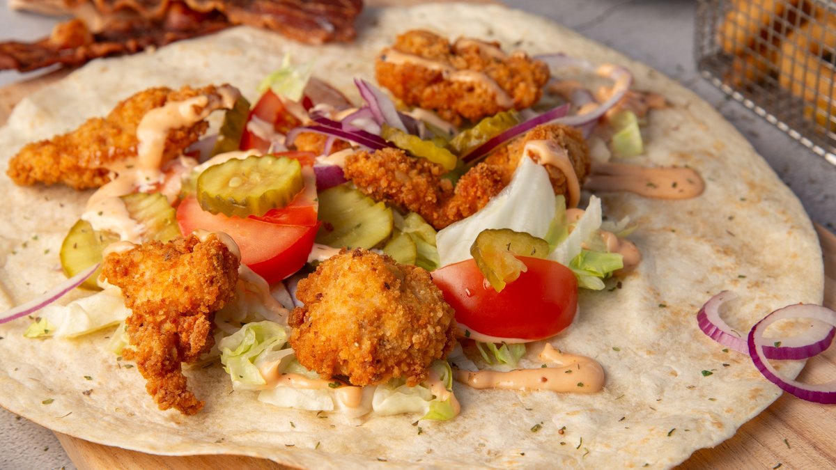 Fresh veggies, crispy chicken, homemade peppery cayenne sauce. What could go wrong?