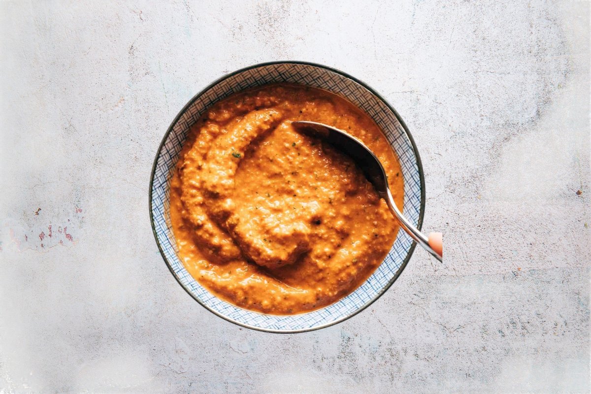 Tapasbræt med serrano skinke, charcutteri med cornichoner, sydeuropæiske oste med honning, romesco dip, tomatsalat med basilikum, patè, syltede rødløg, oliven mix, saltede mandler og trøffel mayo. Serveres med brød.