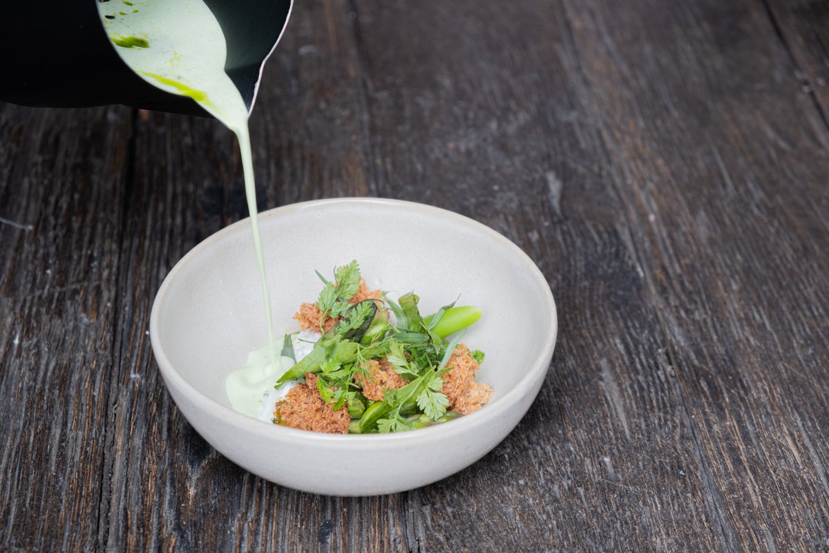 Forret: Spicy kokossuppe, kaffirlime, svampe & thaibasilikum. Hovedret: Grillet oksecuvette, pommes frites, salat & sauce bordelaise Dessert: Solero Sundae