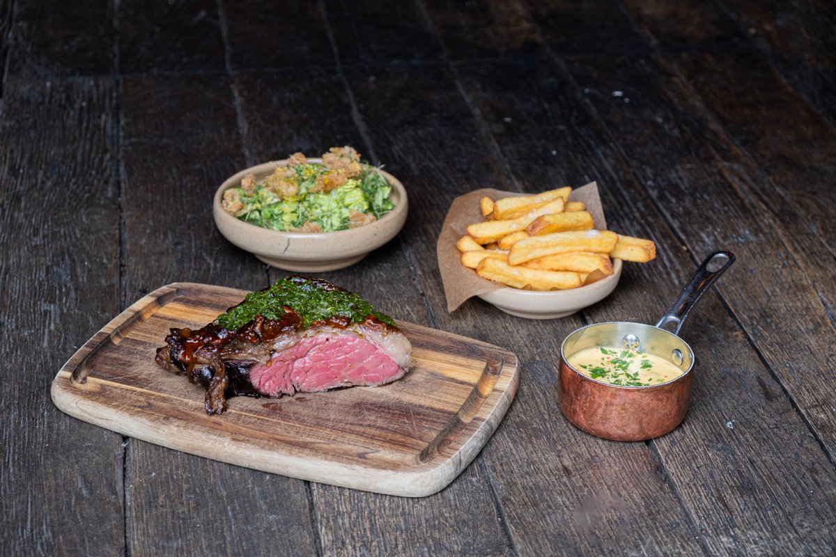 Med chimichurri, pommes frites, salat & sauce bordelaise