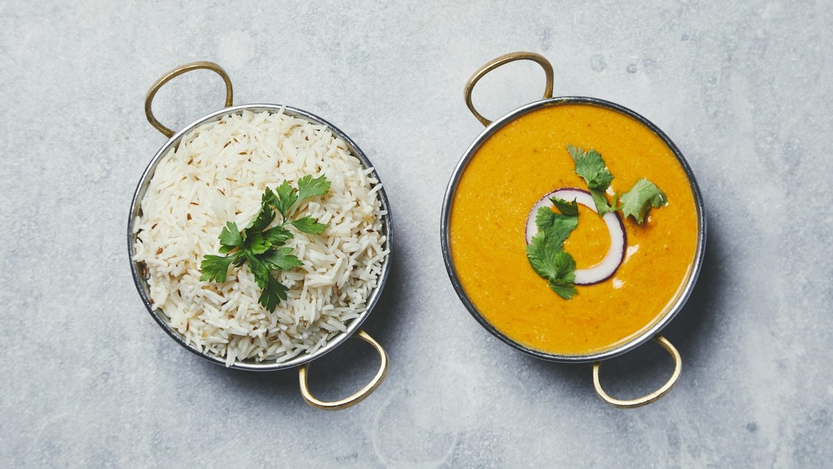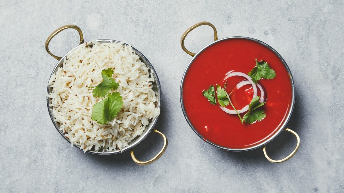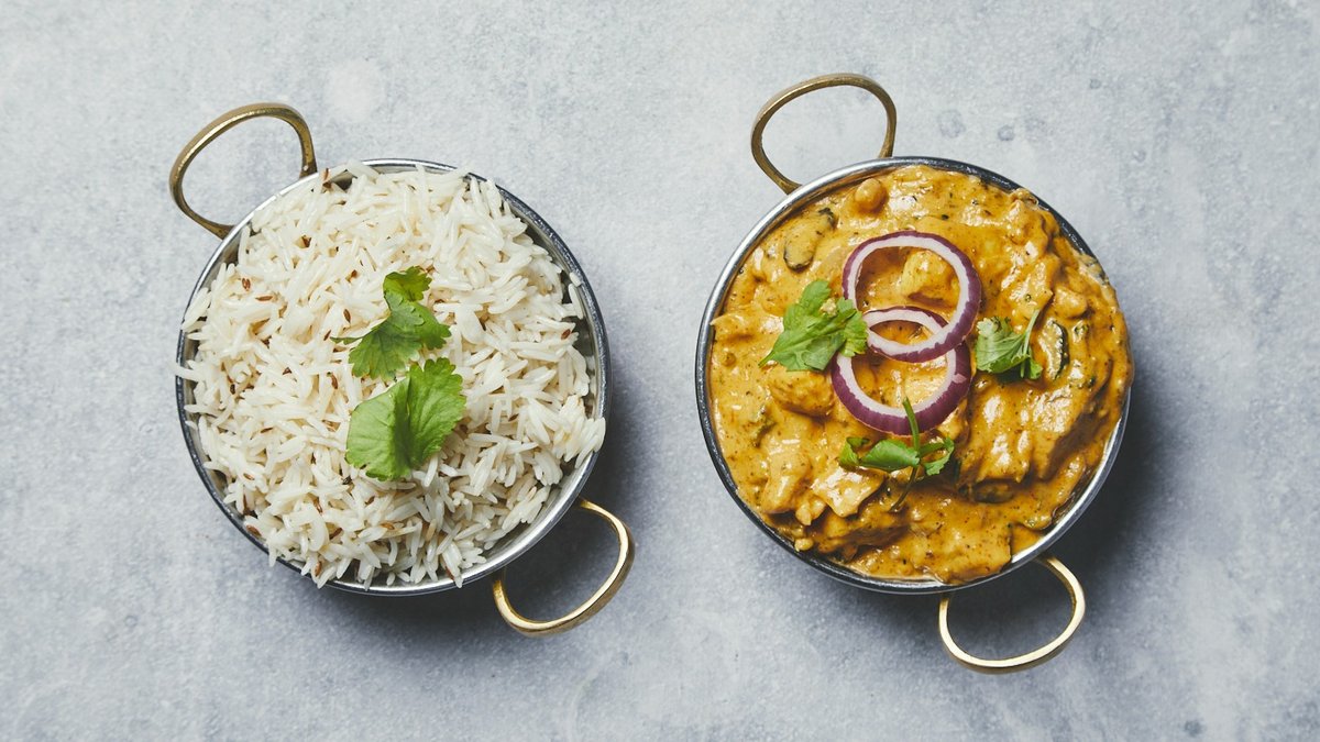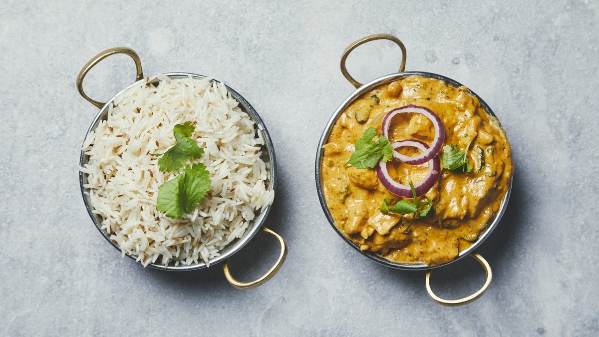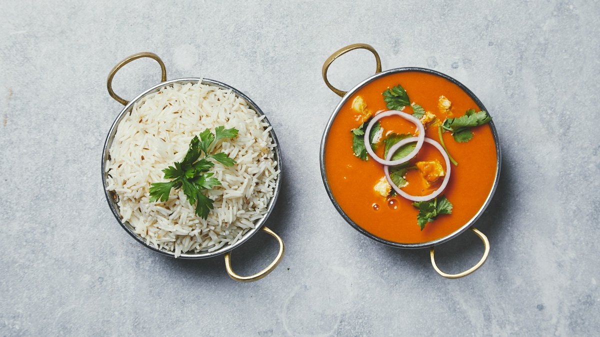Valgfri protein, sovs af løg, tomat, fløde, citron, hvidløg, ingefær, og urter.