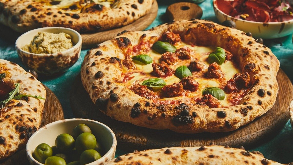 Fior di latte ost, knuste San Marzano tomater, Salame Piccante, padron, nduja og stracciatella. Serveres med valgfri crust dip.