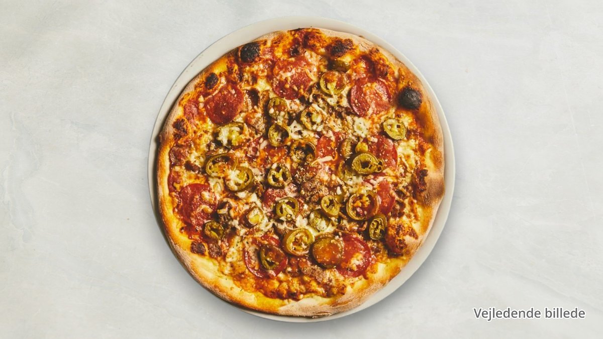 Pizzasauce, ost, pepperoni peberfrugt, jalapenos, chili og hvidløg.