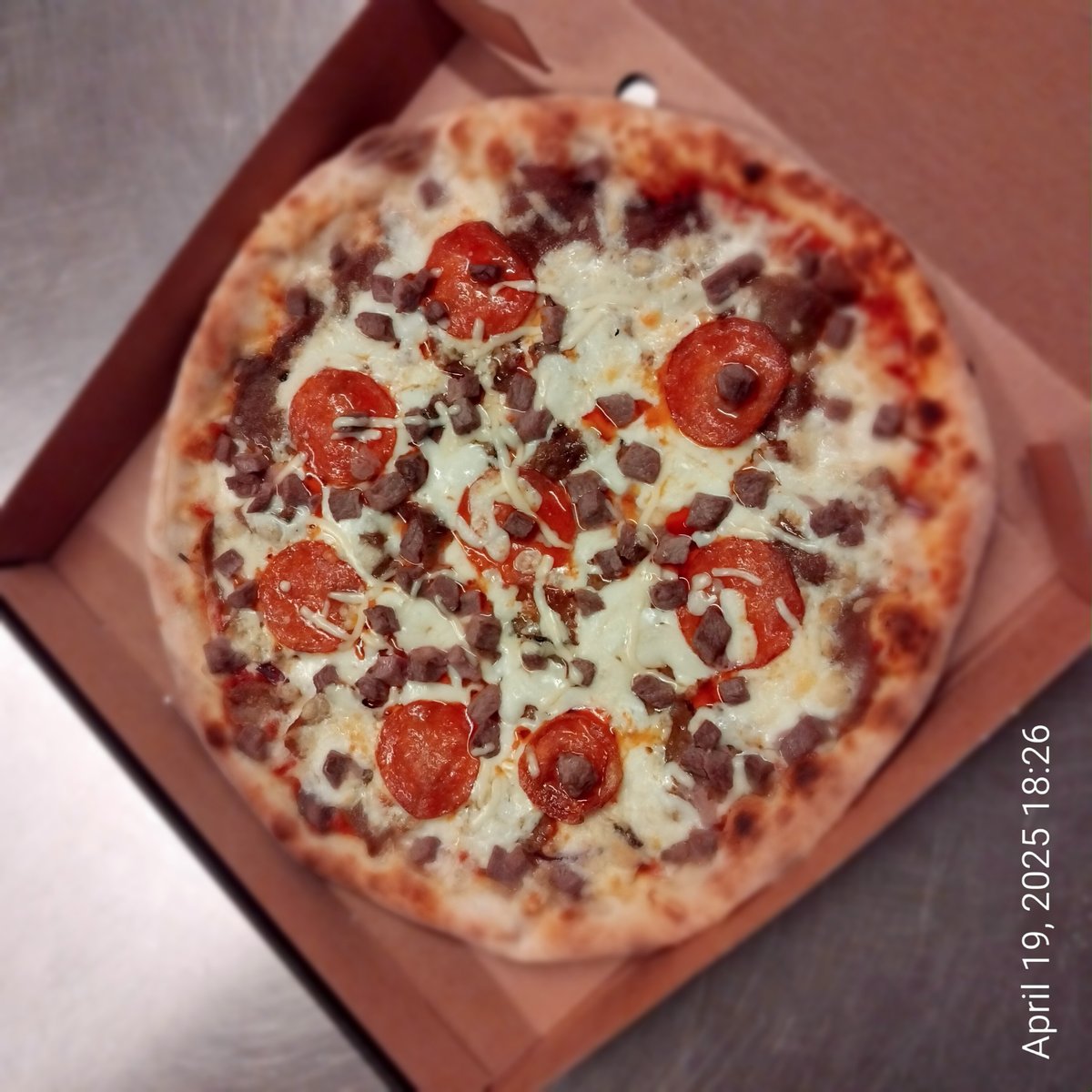 Pizzasauce, Ost,Parmaskinke,Pølser,Bacon,Diavola