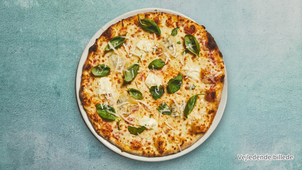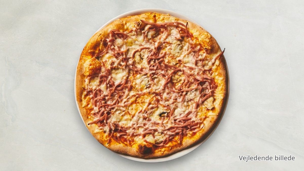 Pizzasauce, Ost, Skinke, Bacon, Pepperoni, Pølser