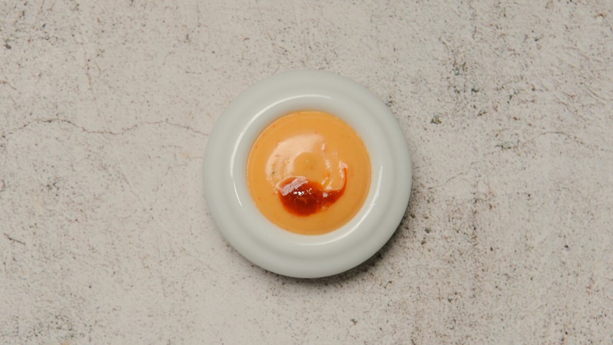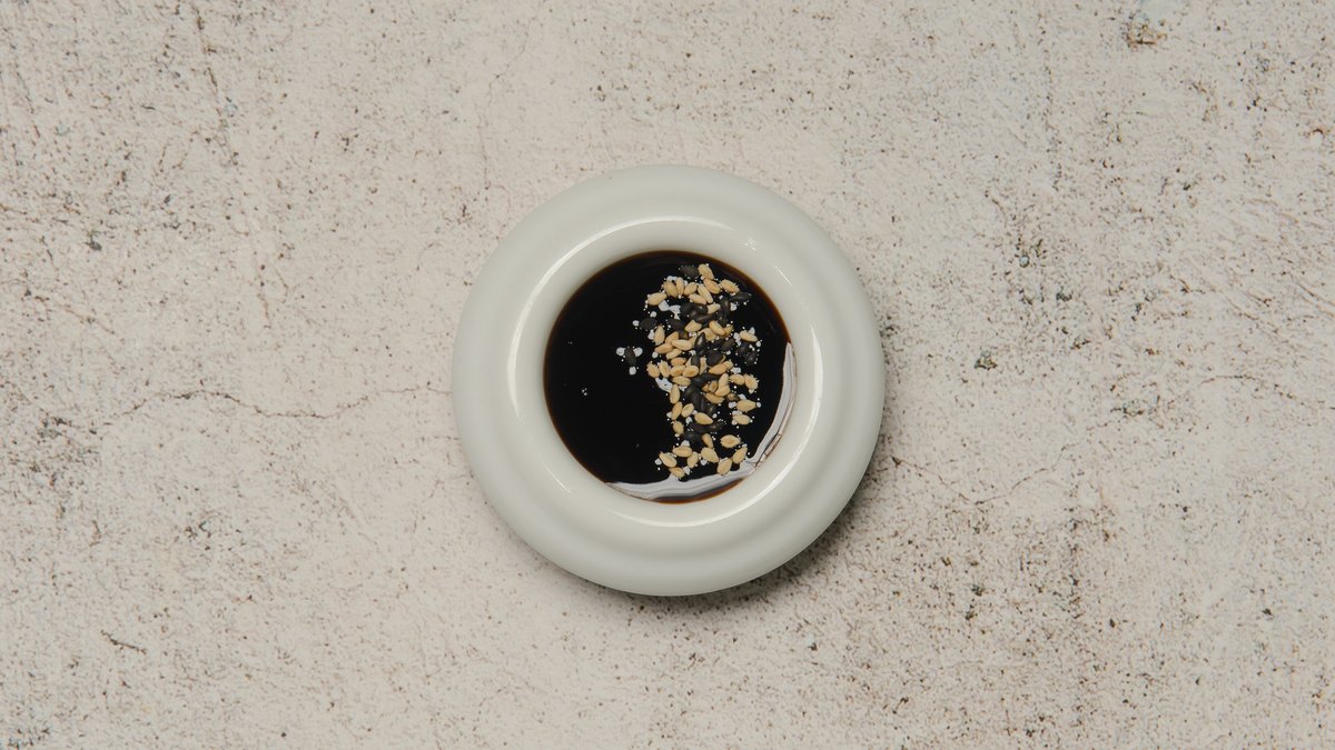 Serveres med kimchi mayo, unagi sauce, sort og hvid sesam.