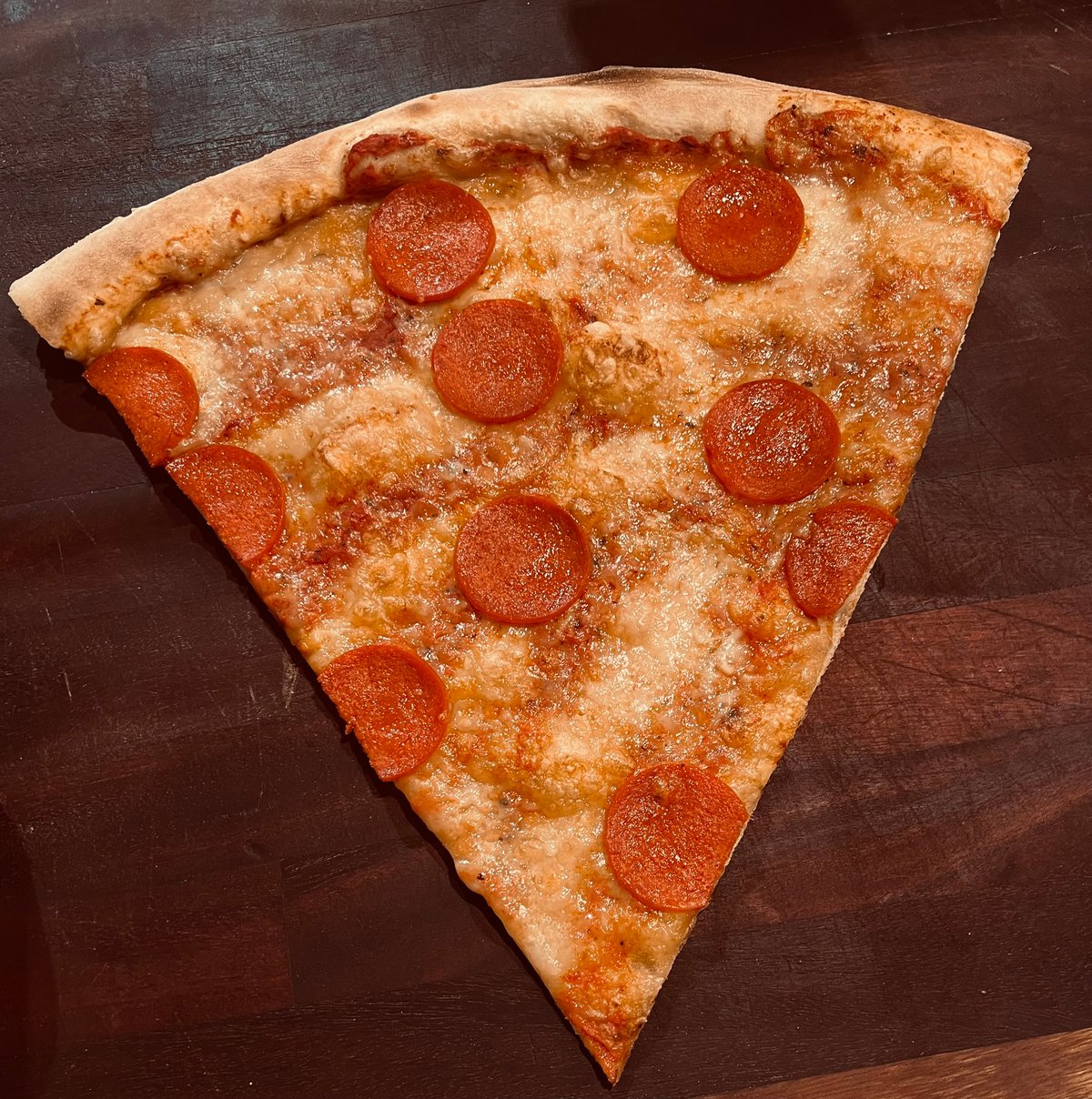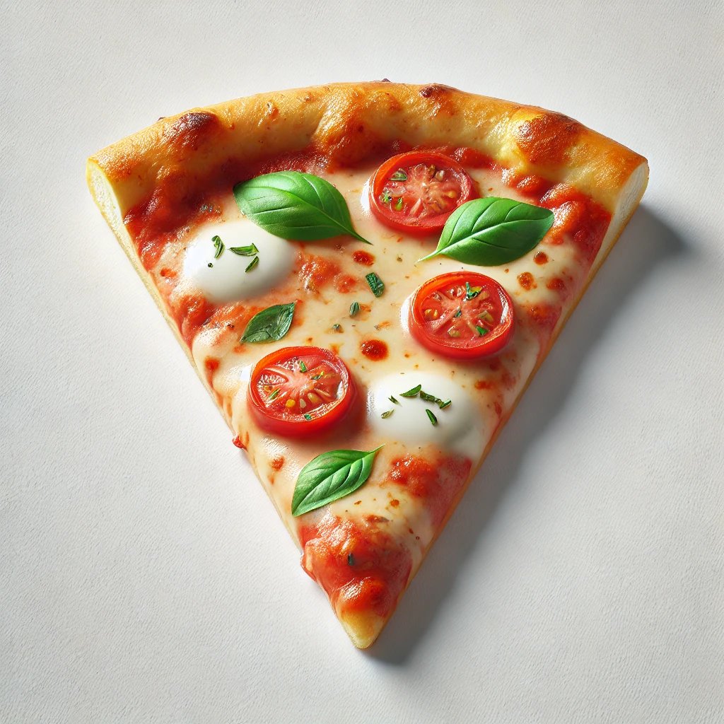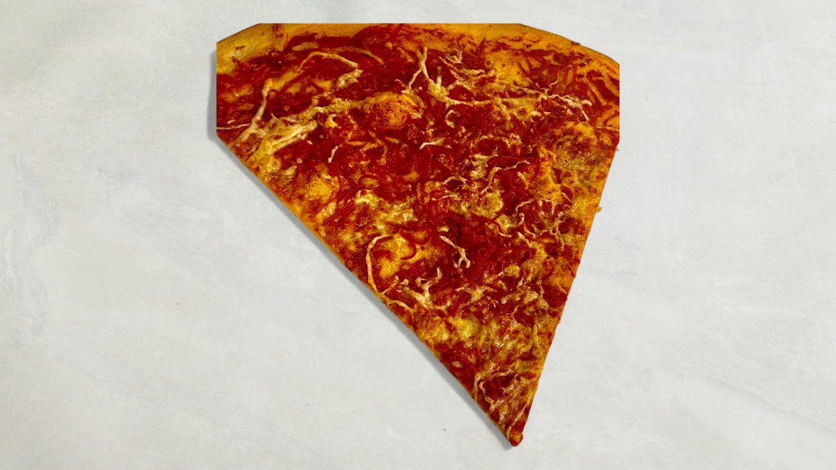 Pizzaslice med tomatsauce, ost og pepperoni.
