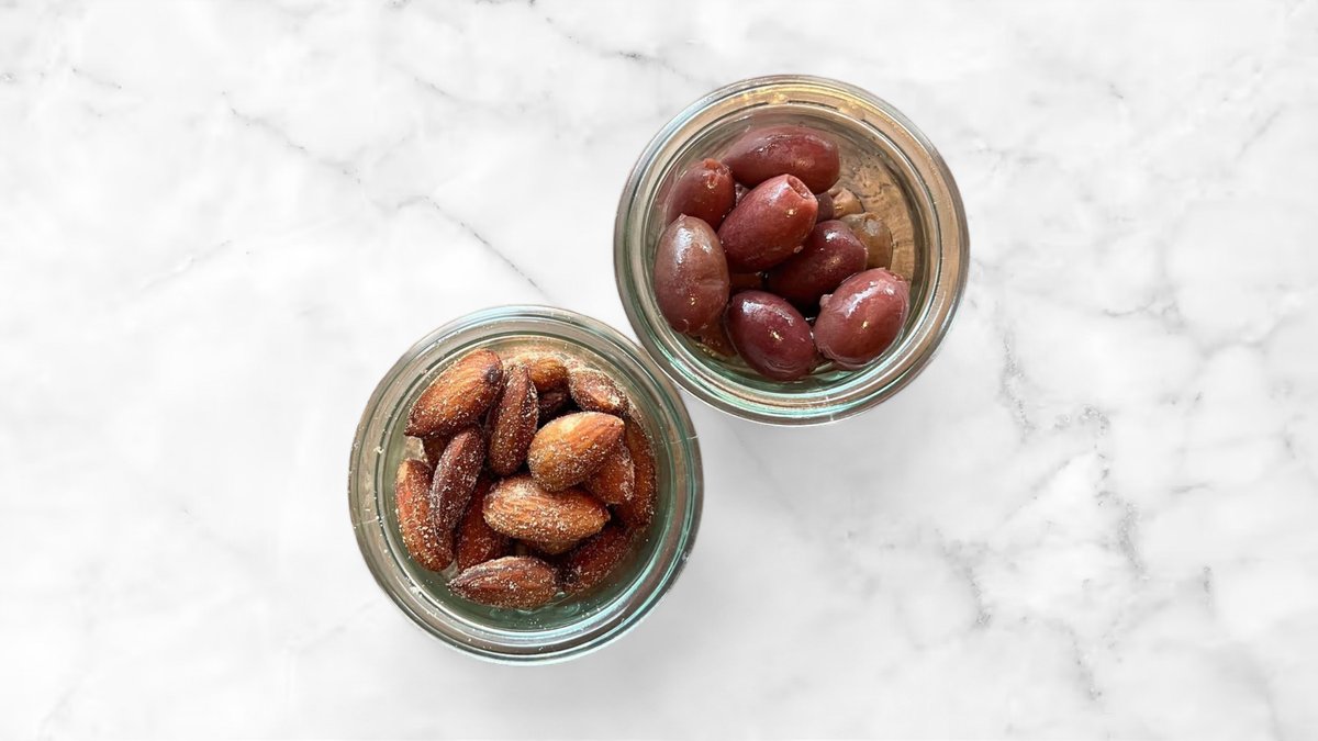 Mozzarella, scarmoza, kartoffel, oliven, rosmarin og rosmarinolie.