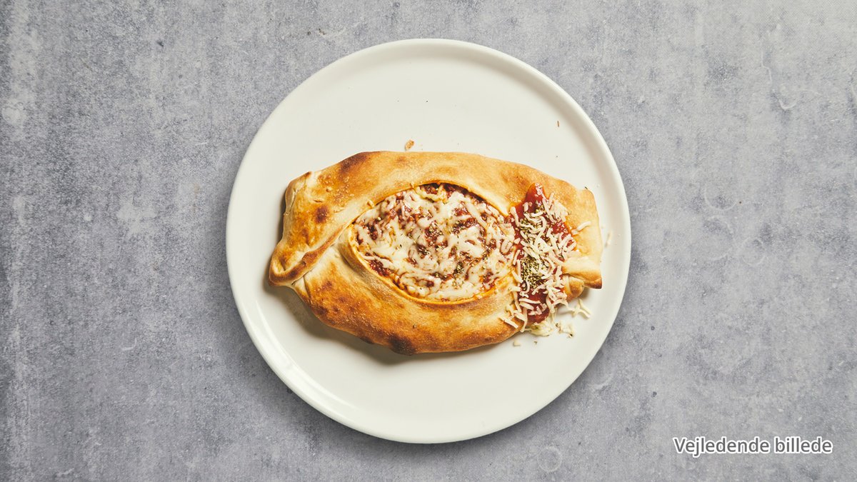 Tomat, ost, kødstrimler, gorgonzola, jalapeños og tacosauce.
