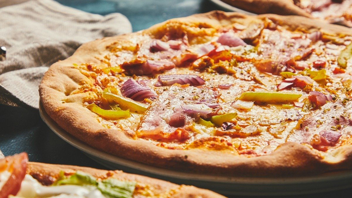 Tomat, ost, skinke, paprika, bacon og hvidløg.