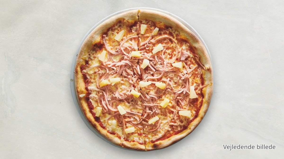 Tomatsauce, ost, skinke og ananas