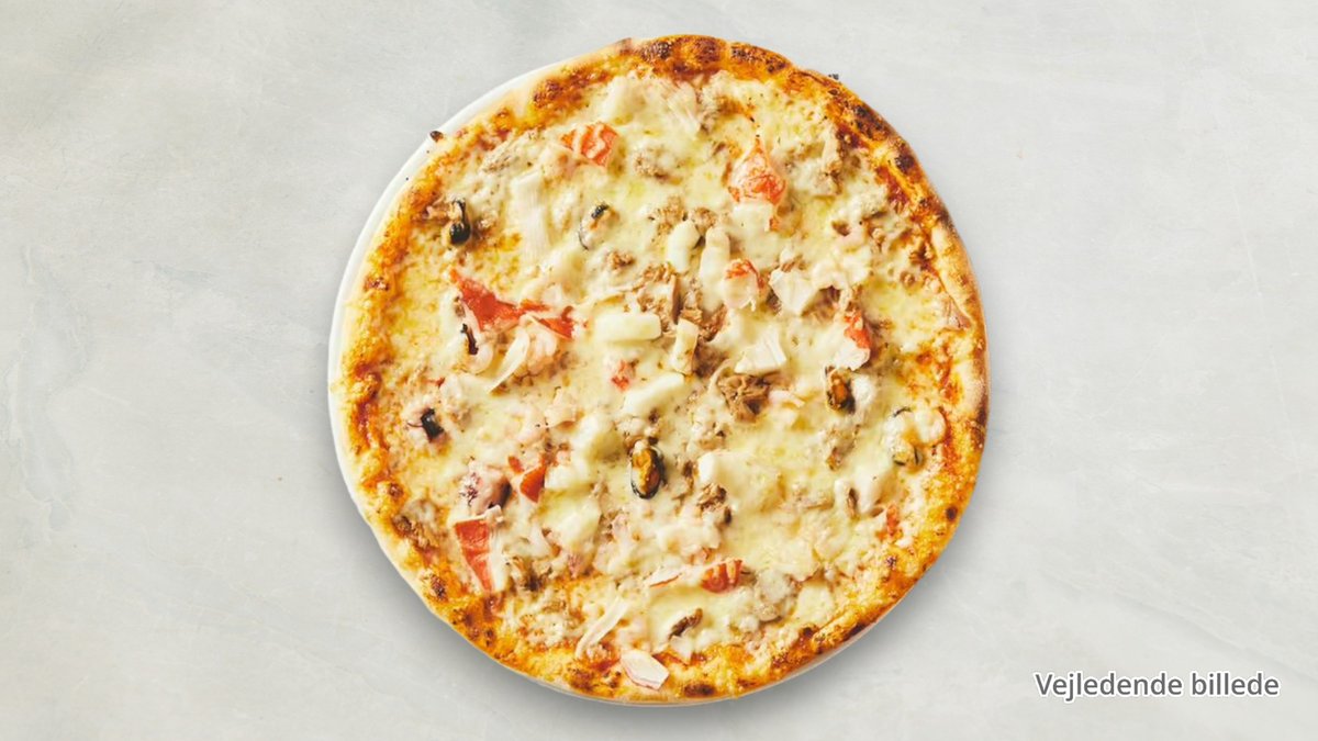 Tomatsauce, ost, tun rejer og muslinger.