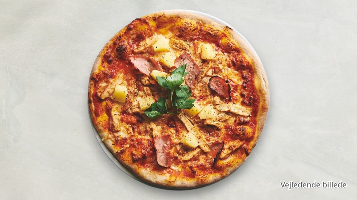 Tomatsauce, ost samt 2 valgfrie ingredienser.