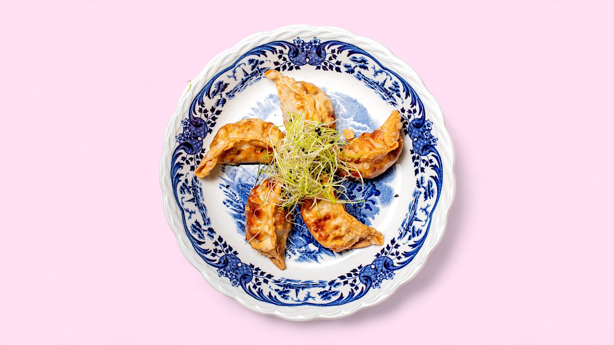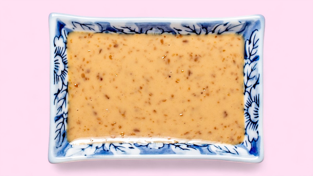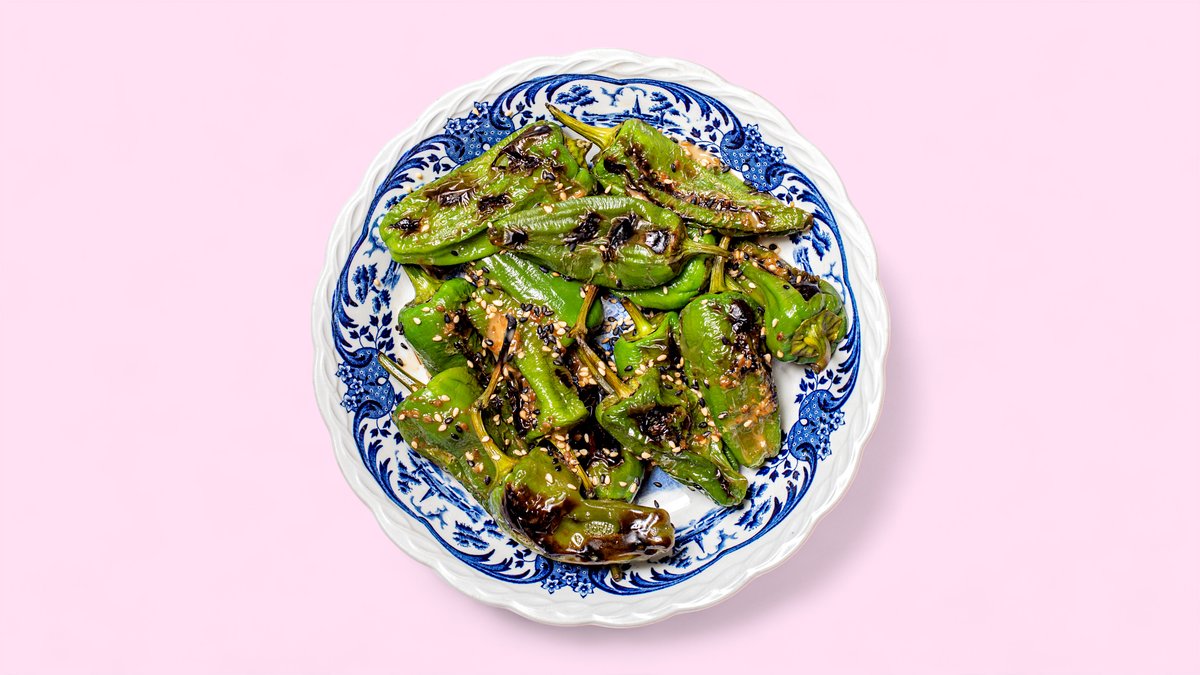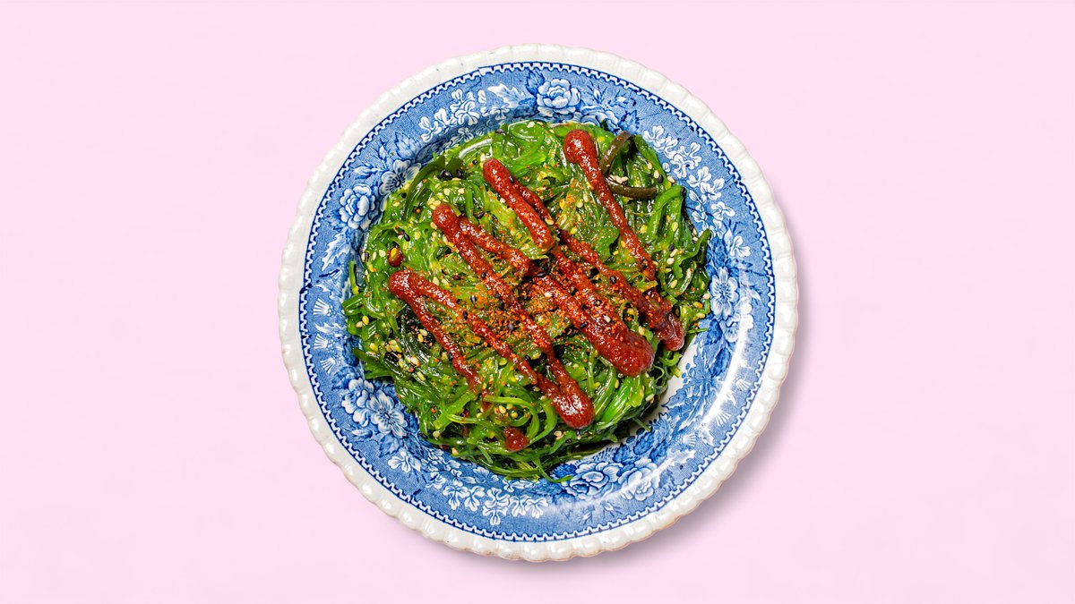 Toppet med soya, sesamolie og hvidløgsspirer.