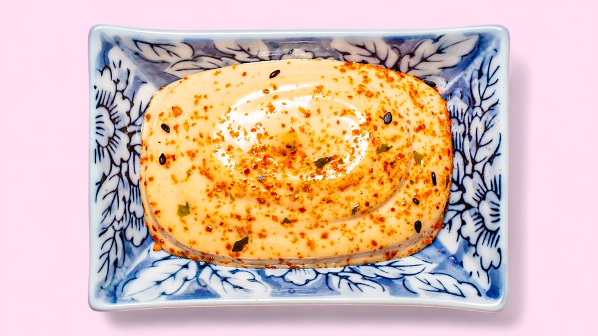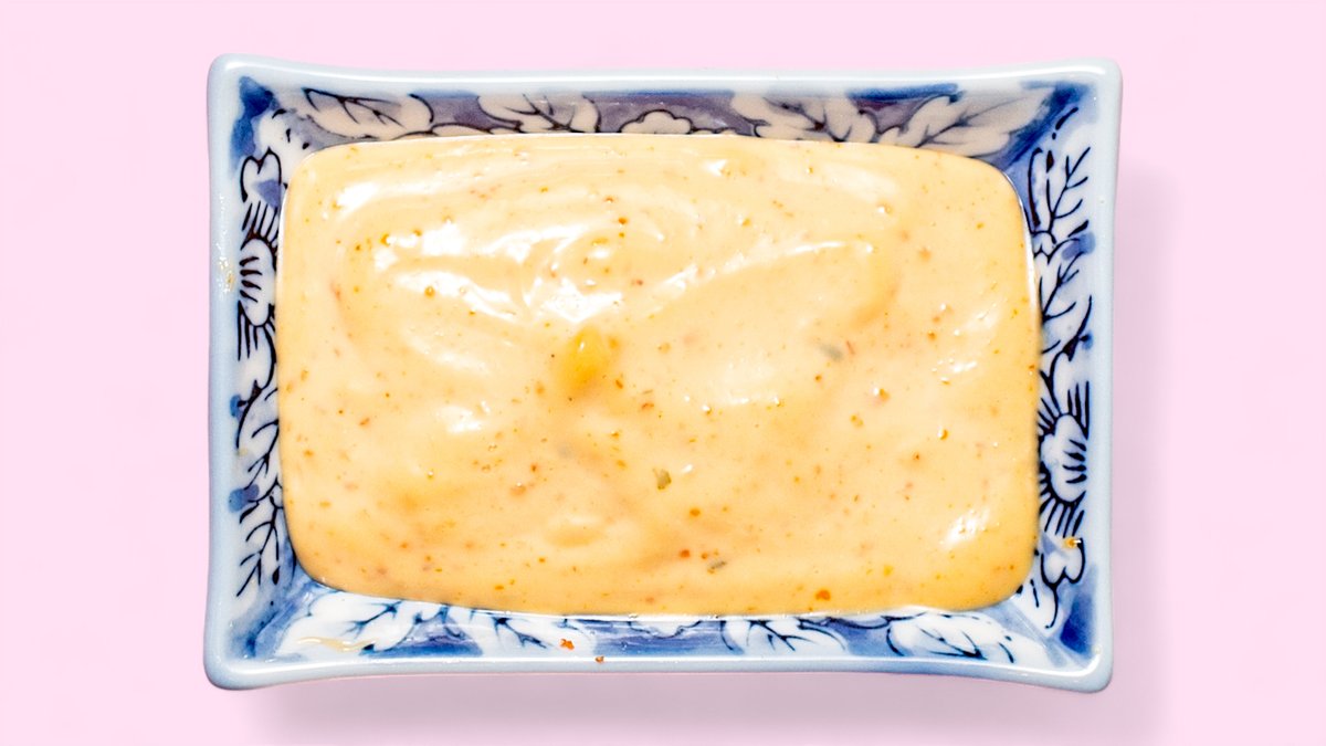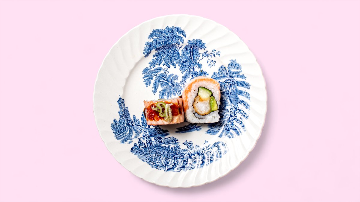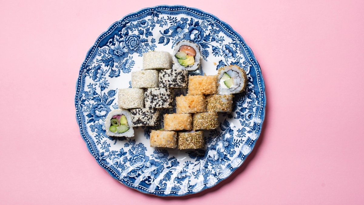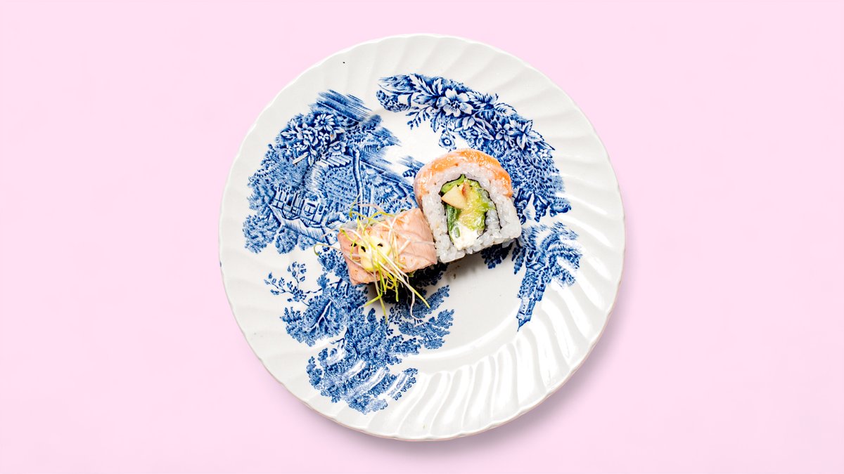 Med vegansk fyld eller laks serveret med mayonnaise.