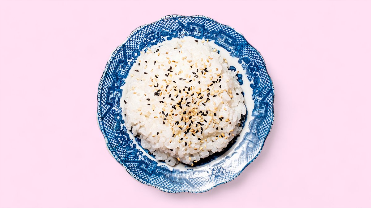 Bolle af ris toppet med rå fisk eller grøntsager.