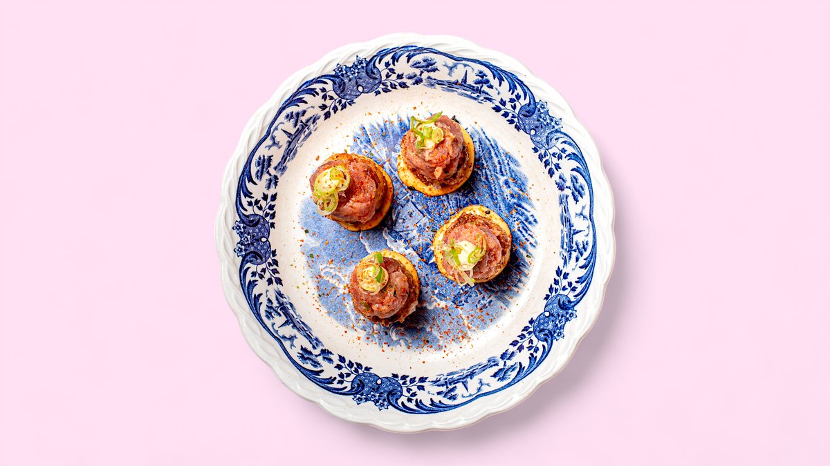 Tun, avocado, agurk, mango, mango-mayonnaise og tataki.