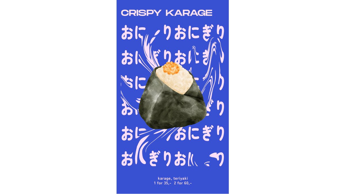 Karaage, agurk, rødløg & chilimayo. Toppet med avocado, chilimayo og teriyaki.