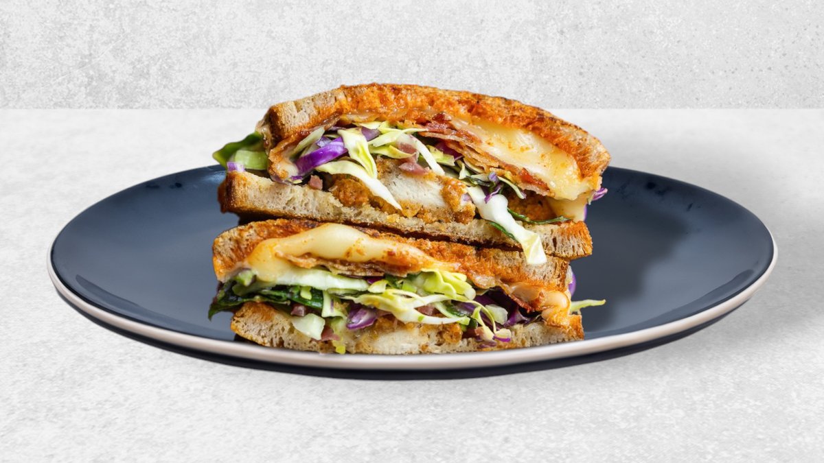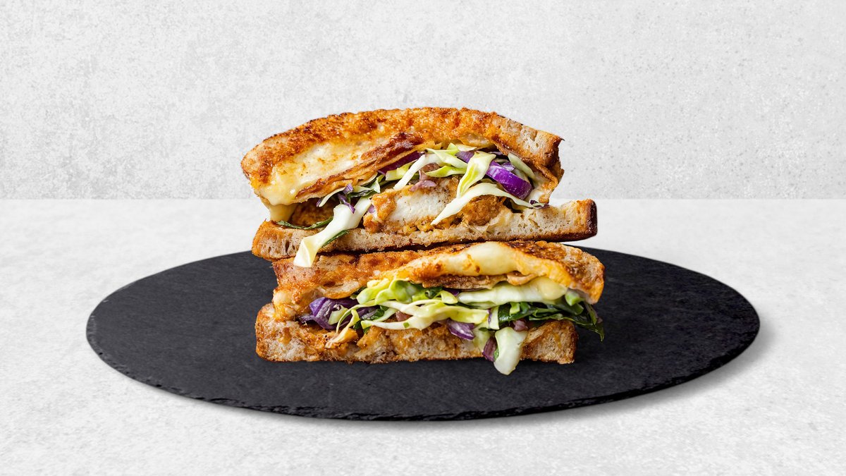 Toast + Drink. Surdejsbrød, crispy chicken, fintsnittet spidskål, BBQ sauce, syltet rødløg & mayo. Serveres med en valgfri drikkevare.