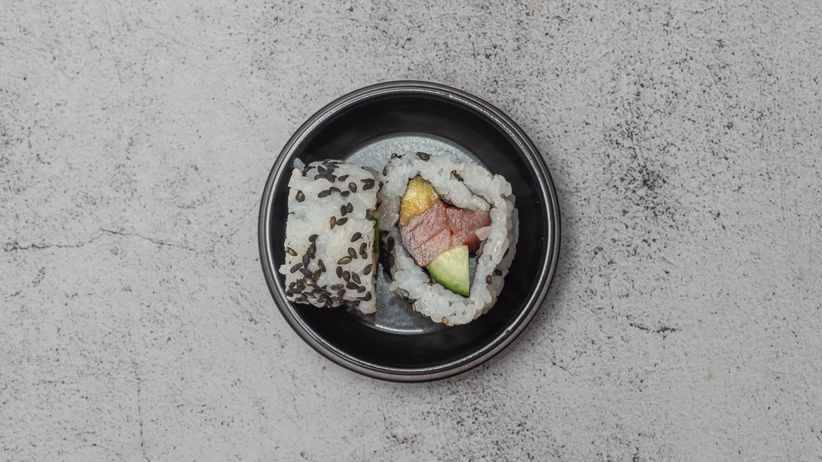 Tun, mango og agurk Rullet i sorte sesam.