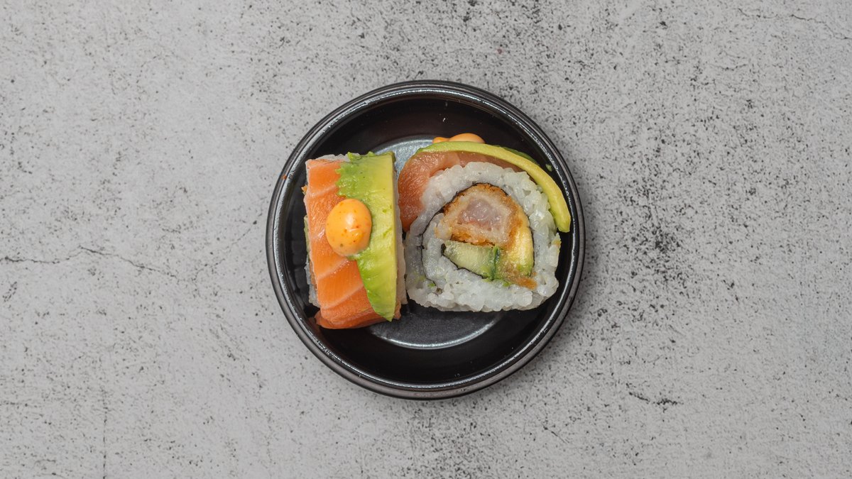 Tempurarejer, agurk og chilimayo Toppes med laks, tun og avocado.