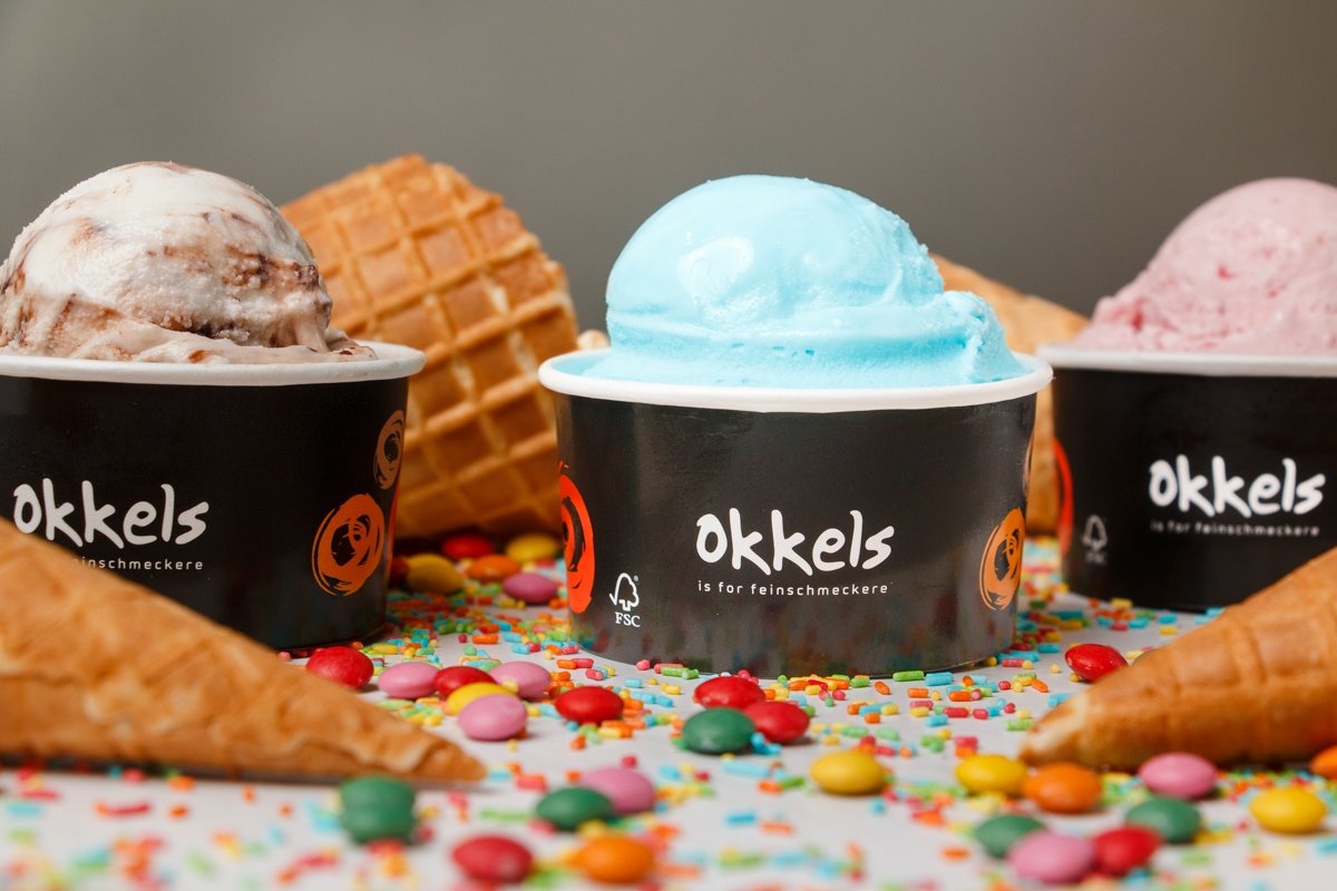 Okkels har specialiseret sig i hjemmelavet is. Grundbasen til isen bliver lavet på et lille sted syd fra Livigno i Norditalien, hvor den smukke rene og bjergrige natur giver grundbasen en perfekt grundsmag og cremethed. De fleste råvarer importeres fra Italien, som er kendetegnende for noget af verdens bedste is.
