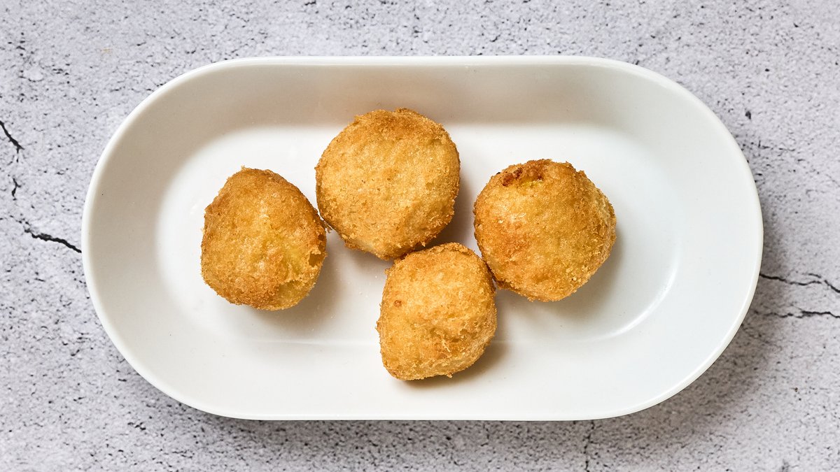 Kartoffel, mozzarella, mascarpone, rosmarin, jomfru olivenolie, saltflager og sort peber.