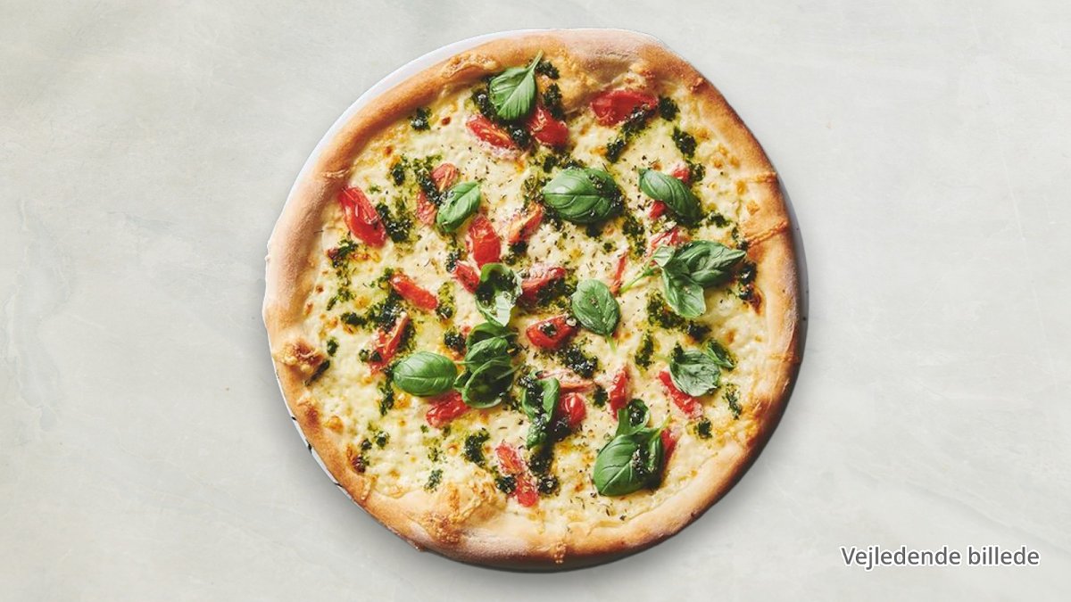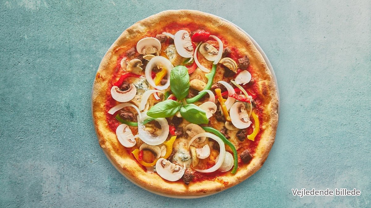 Tomatsauce, ost, champignon, artiskok, ananas, paprika, løg, asparges, ærter og majs.