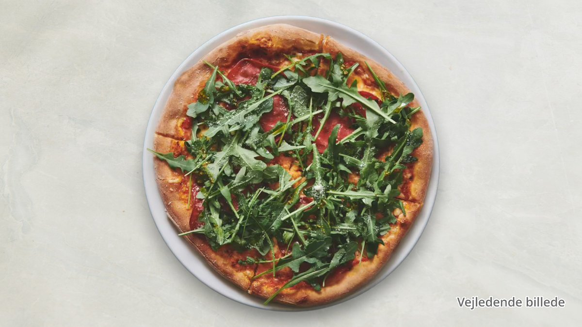 Tomatsauce, ost, skinke, hakket oksekød, paprika, hvidløg og chili.