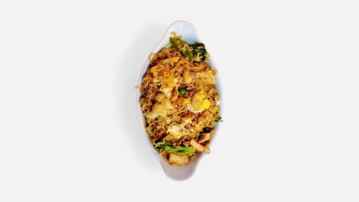 Tomatsauce, ost, løg, champignon, kødstrimler, kylling, chili og hvidløg.