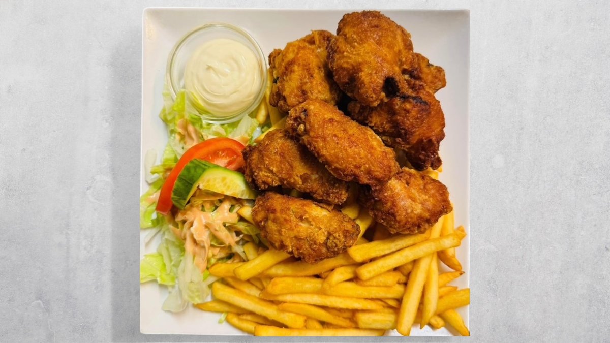 Forretter: 4 x Indbagt svinekød 4 x Indbagt kylling 4 x mini forårsruller med sød chili Hovedretter 2 x Stegte ris med and 2 x Gongbao kylling med cashewnødder - Stærk