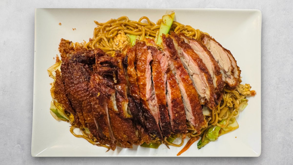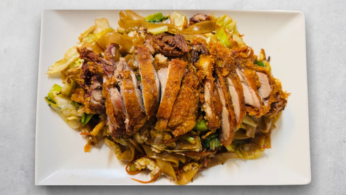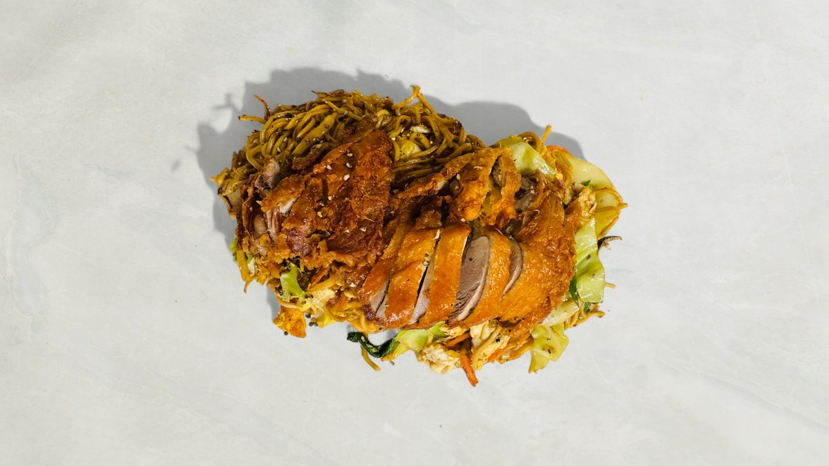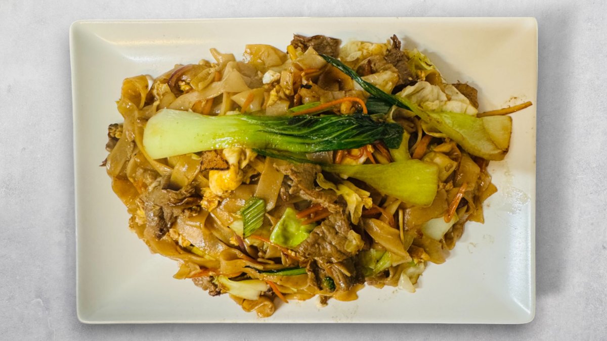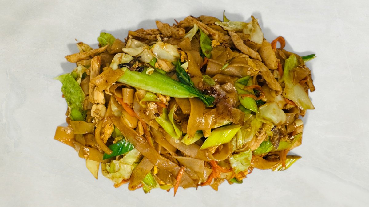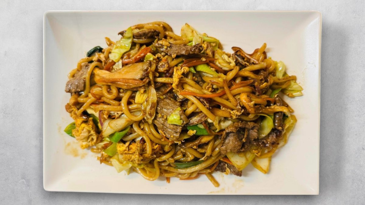 53. Stegte nudler med grøntsager, æg, og pebersauce
