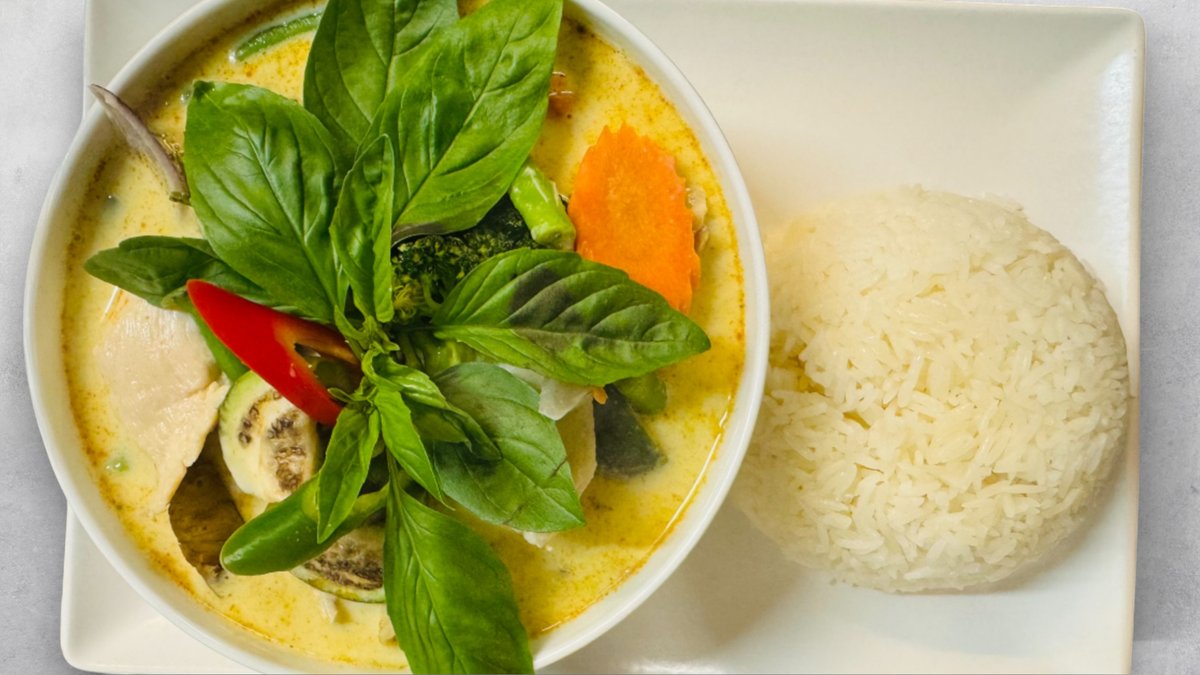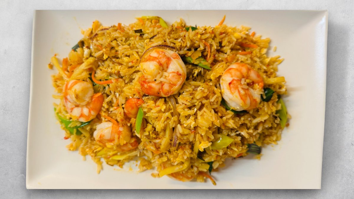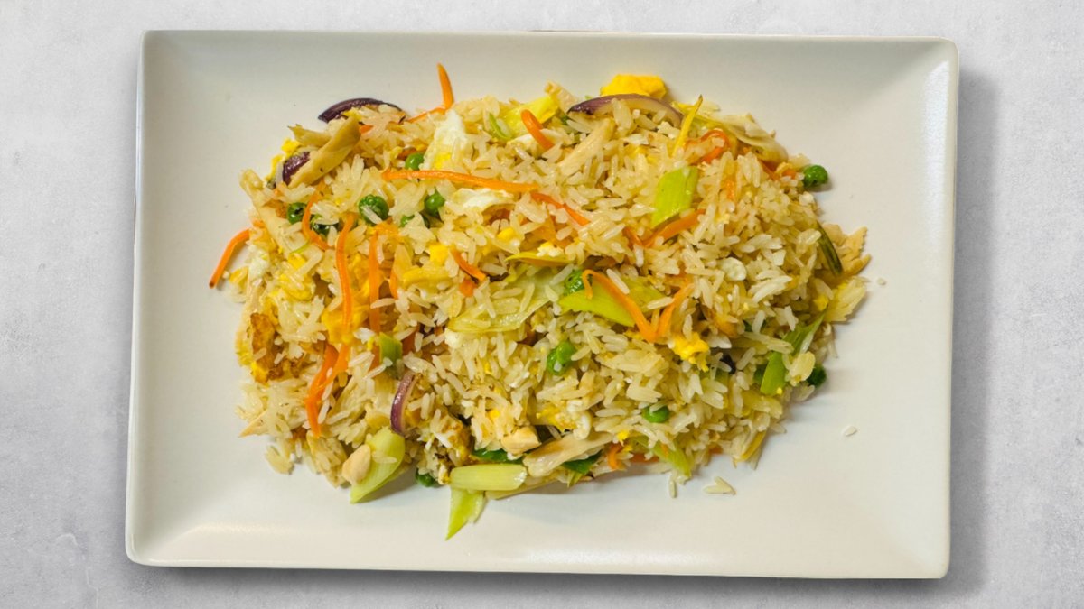 Serveres med valgfri protein, grøntsager, æg, rejer, skinke, kylling og oksekød.