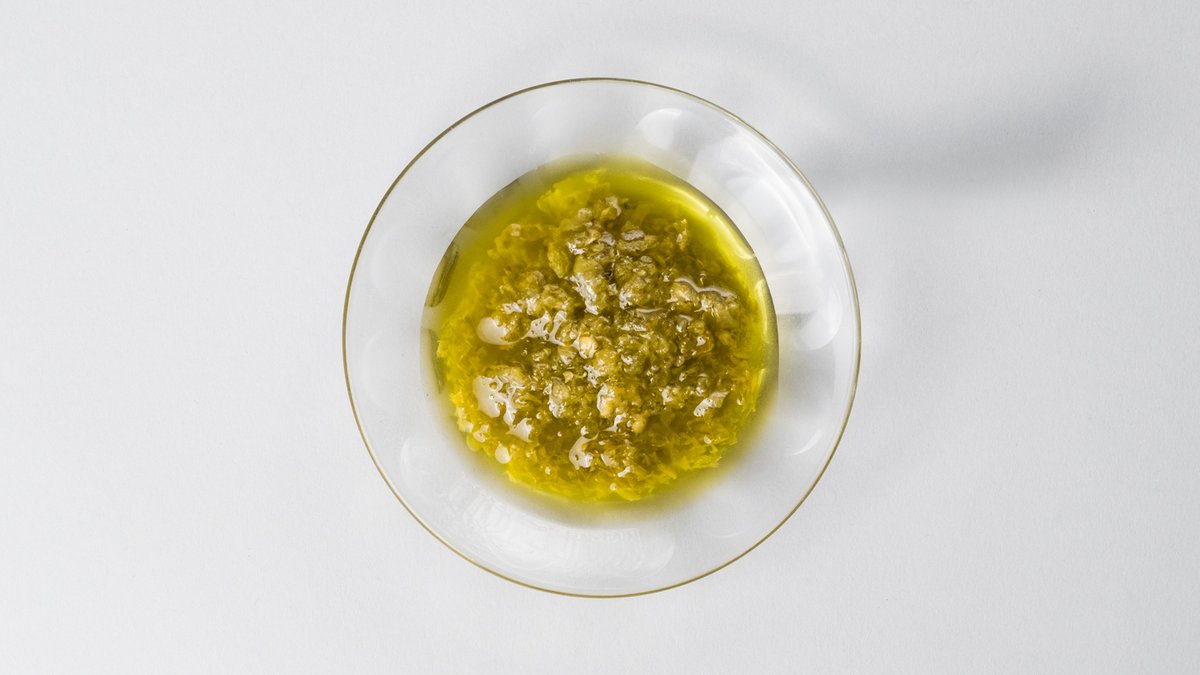 Vores ikoniske surdejs- & kartoffelbrød, friskost, frisk basilikum, hjemmelavet grøn chilisauce, citronskal, frisk peber & olivenolie.